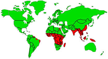 La susceptibilidad a la infección es universal, pero existen diferencias geográficas notables en cuanto al tipo y gravedad de la enfermedad. En las zonas endémicas se dan frecuentemente infecciones repetidas.
