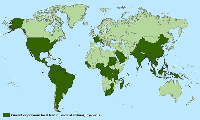 La enfermedad se distribuye fundamentalmente por África, Asia y el Subcontinente Indio, pero recientemente se ha extendido primero a Europa y en los últimos meses ha hecho su primera aparición en las Américas, habiéndose identificado ya en más de 40 países del mundo.